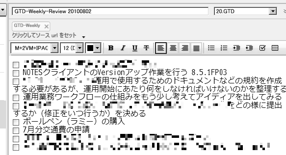 - 今週のページを作成、件名「GTD-Weekly YYYYMMDD」(例:GTD-Weekly 20100802 )