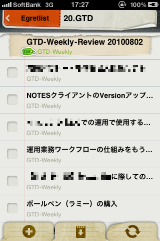 ※実際にタスクを処理することを考えた場合このiPhoneのEgretlistを使うと綺麗に見えていいですね!基本的には週次レビューの吐き出し先、兼、毎日のタスクとしてモレスキンと一緒に観るのに使います。