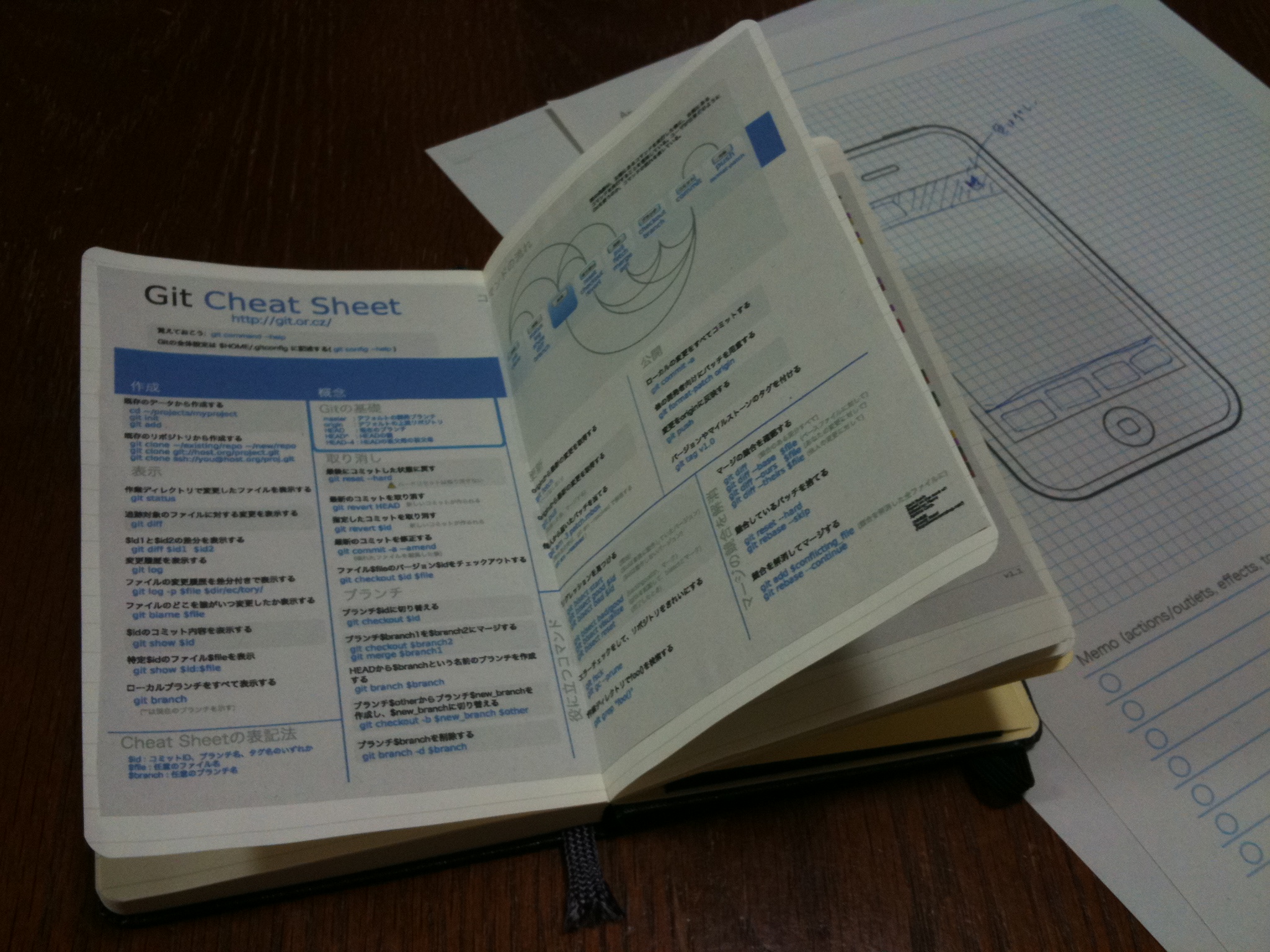 基本は仕事の関連のTodoリストばかりなのですが、たまにはiPhoneとか遊びのアイディアだったりします。その時のためにiPhoneのデザインテンプレートとかを何枚か印刷してポケットに入れておくといつでも書けていい感じですね。