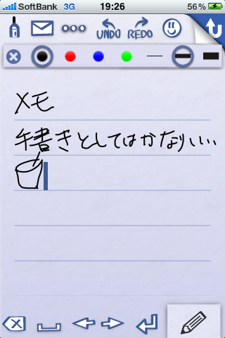 正直アップデートでカスタマイズが大幅に出来るようになって「使っていません」orz 私は何も考えないで使えるのが好きなので色々できるといわれても覚えきれなくて疎遠になるタイプです。とはいえ手書きで書きたい事もしばしばあるので入れています。一番多いのは電話番号とか人の名前の走り書きだったりします。用途としては aNote 同様に流動的なメモが多いのでここで保管する事は余りありません。