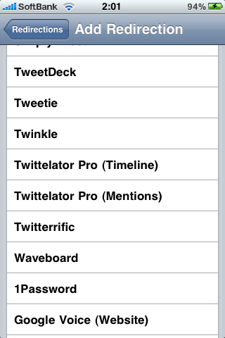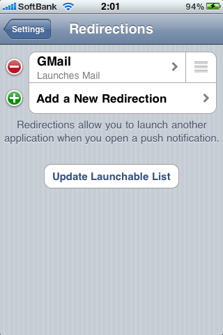 これはProwl内では「Redirect」と表現されています。特定の通知が来た場合に「アプリケーション」に応じてiPhone内のアプリを起動可能です。これで特に専用クライアントを用いなくともワンステップ入りますが自動的に対象のアプリが起動する事が出来ます。※Prowlがサポートしている必要があります。