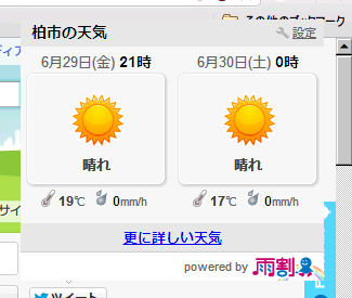 そんな天気予報を確認するのに 雨割forChrome というプラグインを使っています。