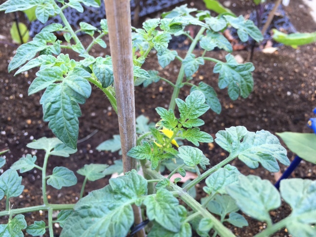 トマトが早くも花が咲く。今年のミニトマト背丈小さいなぁ