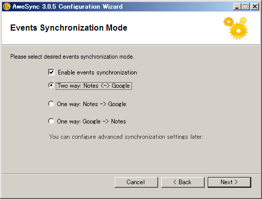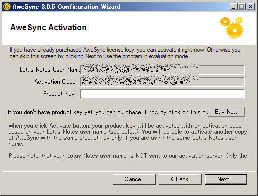 初めての起動時にはWizardが起動してLotusNotesのセットアップが始まります。 全ての設定は導入後に変更ができます(急に同期が始まったりもしません)ので軽い気持ちで選択して問題有りません。
