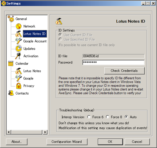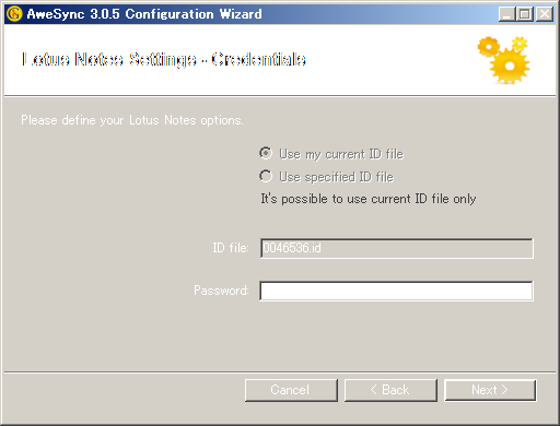 ③自動的に、Notesの情報からIDファイルが選択されています。変更がある場合にはここで選択を変更します。