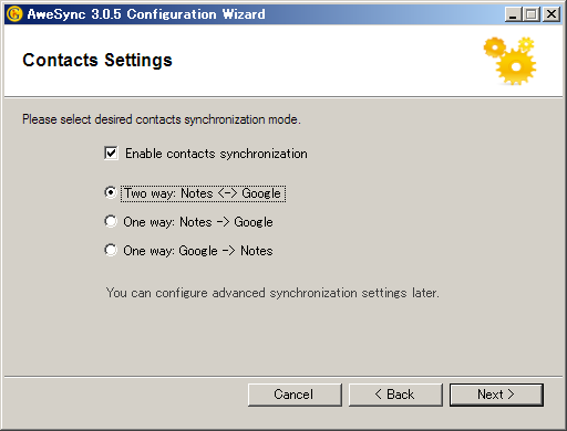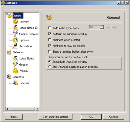 基本的には構成ウィザードで実行した内容が記載されています。最初の項目にある自動起動や、定期的な同期の設定を変更すれば問題有りません。Windowsが起動した際に自動的に起動していたほうが便利ですね。
