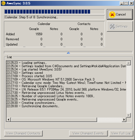 初回の同期には非常に時間がかかります。最近のもの何件などの指定ができないため全ての情報が動機されてしまう模様です。従って件数が多いと非常に大変なことになります。が、まぁ辛抱して待ちます。