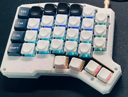 キーボードをなるべくそのまま使いたい(スタンドは使いたくない)こともあり、一時期狂ったようにキーキャップを色々印刷して見たが、これだという思ったものが作ることはできず。それなりに打ちやすくできたものはあったのだがレジェンド(文字)を入れたいと考えた時にK1Cでは難しく既製品のキーキャップに戻っています。スリムタイプのキャップも数ミリ稼ぐことができるので既製品のUltraSlimみたいなものも使って見たいところです。