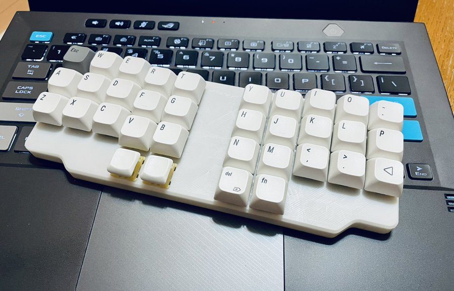 世の中にはたくさんの自作のキーボードが溢れており自分で作る意味はそれほど実はないのかもしれないのですが作れると思うと作ってみたくなりますよね。どこかで見た感じの模倣になっている感じもするのですが自分の手のサイズとかに併せてプロトタイプを作ってみました。