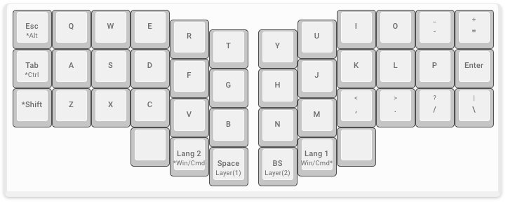 まだキーマップなどは調整していますがだいたい以下のような感じ、LinuxとMacのレイヤーの自動入れ替えをしたいのですがまだそこまでできてない。
