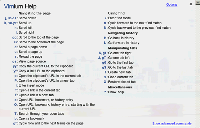 というわけで最近はVimiumというものを使用している、Firefoxの時にはVimperatorを利用していたのだけどChromeではこちら。それほどハードに何か利用するわけではないので十分です。