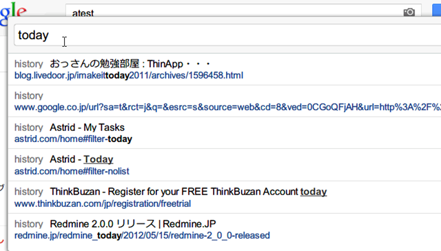 ちなみに便利な機能として o や O を押すと出てくる検索バーがあるのでこれは便利です。historyの検索や、Webサイトを検索してくれるのでそのあたりバシバシ使う人には非常におすすめです