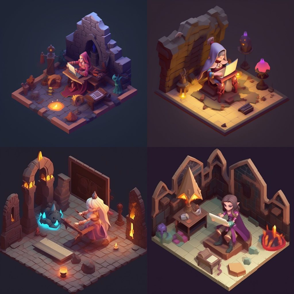 このジオラマ風にしているキーワードが Isometric 3d diorama of 。これだけで色々楽しい画像が出来上がりますね。ミニチュア感がとてもいい感じです。