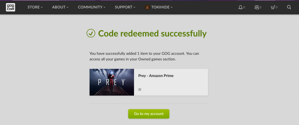 先日も、Amazon Prime のGameにてGOGゲームの無料クーポンが配布されていたので登録方法を書いておきます。最近はいろいろな場所でコードがもらえていい時代ですね