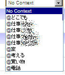 基本的にはどこで実施できるかという点でContextを使用しています。渡しの場合にはたいてい「@どこでも」が該当するのですがまれにそこでしか出来ないものがあるのでその場所に行く機会があるときには「@仕事(~~)」で検索したりしています。