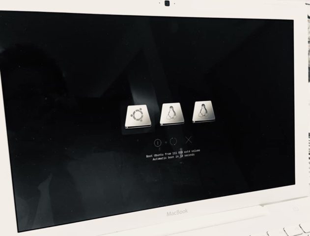 - Macbook1,1ではそのまま起動すると残念ながらディスプレイドライバの都合なのか画面が崩れて起動できません。Grubではその設定を回避するために