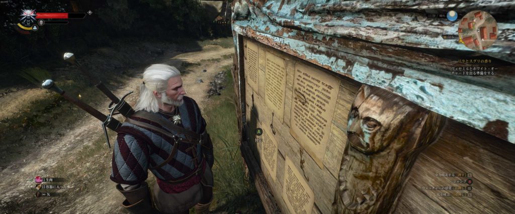 フォトモードというものが有り、写真を取るのと同じように露出とかを変更してスクリーンショットが撮影できます。ちょっと面白い、Linux版のSteamの場合には $HOME/.local/share/Steam/steamapps/compatdata/292030/pfx/drive_c/users/steamuser/Documents/The Witcher 3/screenshots に保管されている(IDは要確認)