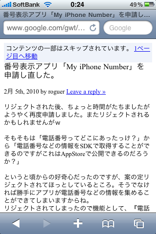 Webの情報をiPhoneで効率良く読むために「Mobilizer」と呼ばれる携帯向けに変換してくれるサービスがあります。有名所ではGoogleのこの機能は結構利用されています。実際にプロクシサーバのように動作してくれれば一番なにも考えずに使えて良いのですが。